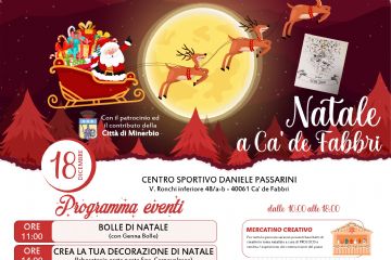 Domenica 18 dicembre 2022 dalle ore 10.00 alle ore 18.00 presso il Centro sportivo D. Passarini di Ca' de Fabbri tante attività per grandi e piccini in programma, con il contributo dei...