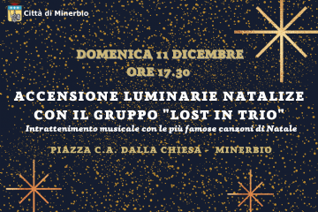 Domenica 11 dicembre 2002 alle ore 17,30 in P.zza C.A. Dalla Chiesa a Minerbio Accensione delle Luminarie Natalizie con il gruppo Lost in Trio.