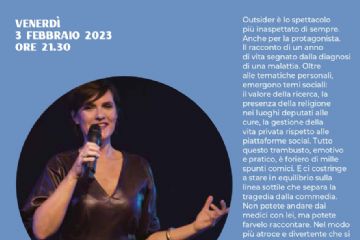 In occasione della Giornata mondiale contro il cancro, venerdì 3 febbraio 2023 alle ore 21.30, Velia Lalli in scena a Palazzo Minerva con OUTSIDER, primo spettacolo della rassegna Minerbio...