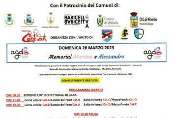 Domenica 26 marzo 2023 dalle ore 9.30 si svolgerà presso lo Stadio G. Soverini in via Don Zamboni a Minerbio il Memorial Martina e Alessandro, manifestazione giovanile di atletica leggera,...