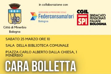 Sabato 25 marzo alle ore 10:00 presso la Saletta della Biblioteca comunale "Prometeo" si svolgerà l'incontro "Cara bolletta" in collaborazione con Federconsumatori e CGIL - SPI Bologna.