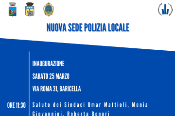La cittadinanza è invitata all'inaugurazione della Sede Unica del Servizio Associato di Polizia Locale che si terrà sabato 25 marzo 2023, alle ore 11:30 a Baricella in via Roma n. 31.