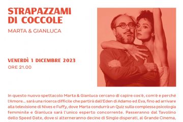 Il secondo appuntamento della rassegna di Teatro comico e commedia della stagione teatrale 2022/2023 di Palazzo Minerva "Strapazzami di coccole" con Marta & Gianluca è...