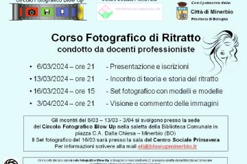 Il Circolo fotografico Blow up organizza, con il patrocinio del Comune di Minerbio, un Corso fotografico di ritratto, tenuto da docenti professioniste. Iniziativa gratuita.