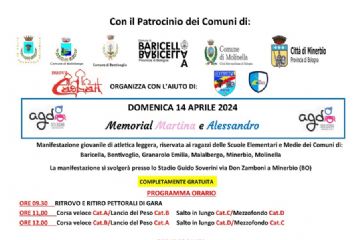Domenica 14 aprile 2024 si terrà il Memorial Martina e Alessandro, presso lo Stadio G. Soverini in via Don Zamboni a Minerbio, a partire dalle ore 9.30. Manifestazione giovanile di...