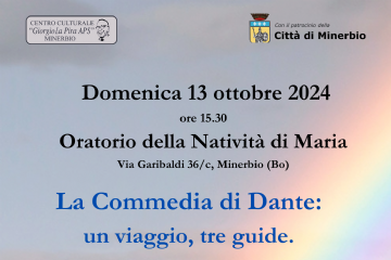 Domenica 13 ottobre 2024 alle ore 15.30 nell'Oratorio della Natività di Maria di Minerbio si terrà la conferenza a cura della professoressa Tiziana Borgognoni dal titolo: La Commedia di Dante...