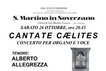 Sabato 26 ottobre 2024 alle ore 20.45 si terrà il concerto per voce e organo Cantate Caelites presso la Chiesa di San Martino...