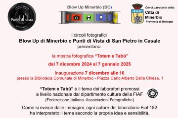 Sabato 7 dicembre 2024 alle ore 10.00 presso la Biblioteca Comunale Prometeo di Minerbio si terrà l'inaugurazione della mostra fotografica "Totem e Tabù" a cura del Circolo Fotografico Blow Up,...