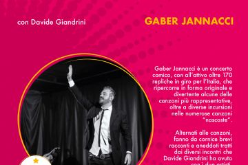 Venerdì 4 aprile 2025 alle ore 21.00 si terrà a Palazzo Minerva l'ultimo spettacolo della stagione teatrale 2024/2025 di Palazzo Minerva: Gaber Jannacci con Davide Giandrini.
