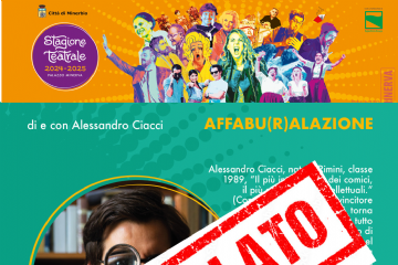 Si comunica che, per motivi di salute dell'artista, è stato annullato lo spettacolo "Affabu(r)lazione" - di e con Alessandro Ciacci - in programma il 31 gennaio 2025, presso il Teatro Palazzo...
