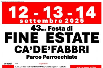 Dal 12 al 14 settembre 2025 si svolgerà la 43 festa di fine estate di Ca' de' Fabbri nel parco parrocchiale.