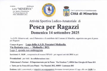 La S.P.S. Minerva ASD, con il patrocinio del Comune di Minerbio, organizza una gara di pesca dedicata ai ragazzi.