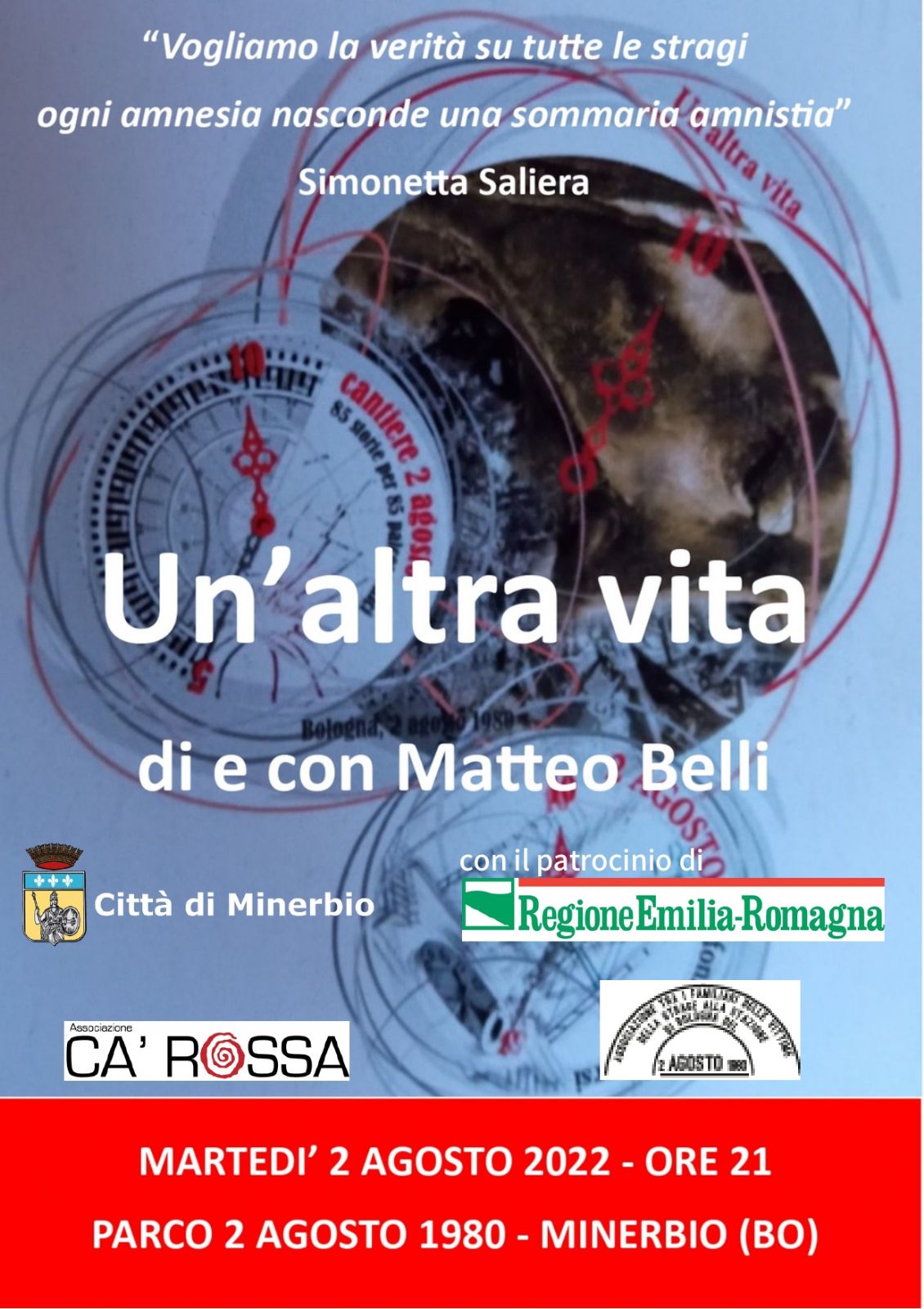 Lo spettacolo, "Un'altra vita" di e con Matteo Belli sarà messo in scena con il patrocinio della Regione Emilia - Romagna martedì 2 agosto alle ore 21.00 presso il Parco 2 Agosto 1980.