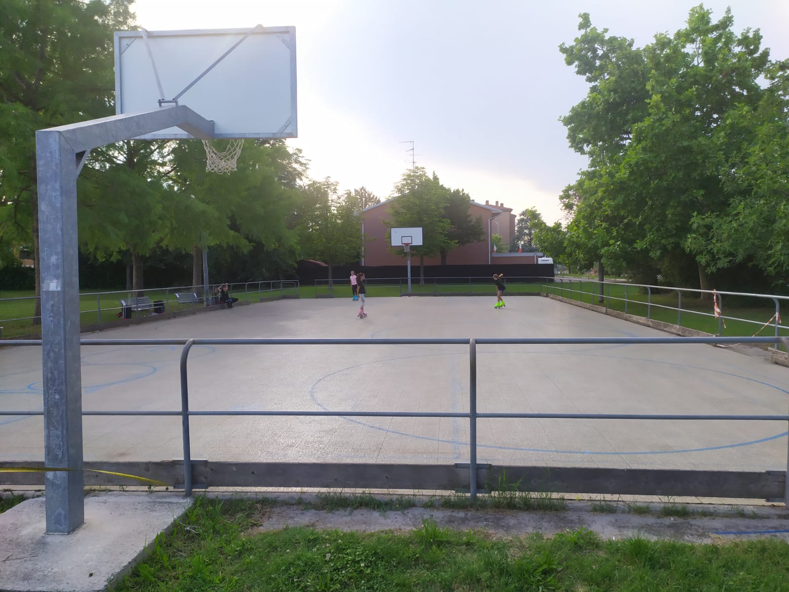 | Informazioni | Il campo è idoneo per il gioco della pallacanestro; fornito di due canestri e righe regolamentari è illuminato fino alle ore 24:00 e non recintato, quindi accessibile a chiunque. E' dotato anche di righe per il pattinaggio. |